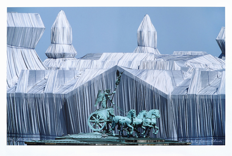 Wir haben eine Edition aufgelegt, die erstmals auf der Toronto International Art Fair gezeigt wurde. Sie hat eine sehr geringe Auflage von nur 12 Exemplaren und ist von Wolfgang Volz, Christo und Jeanne-Claude handsigniert. Lambdaprint unter Acrylglas und auf Dibond aufgezogen, mit Aluleisten direkt zuim Aufhängen. Hier: The Wrapped Reichstag.